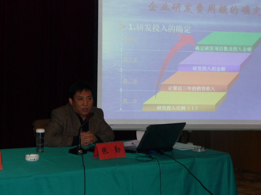 會議邀請石家莊天擇稅務師事務所有限公司總經理,中國注冊稅務師、資深講師,高新技術企業認定操作實戰專家張勤所長講授了高企認定申報技巧和注意事項,并就企業在高新技術企業申報過程中遇到的問題進行了現場答疑。